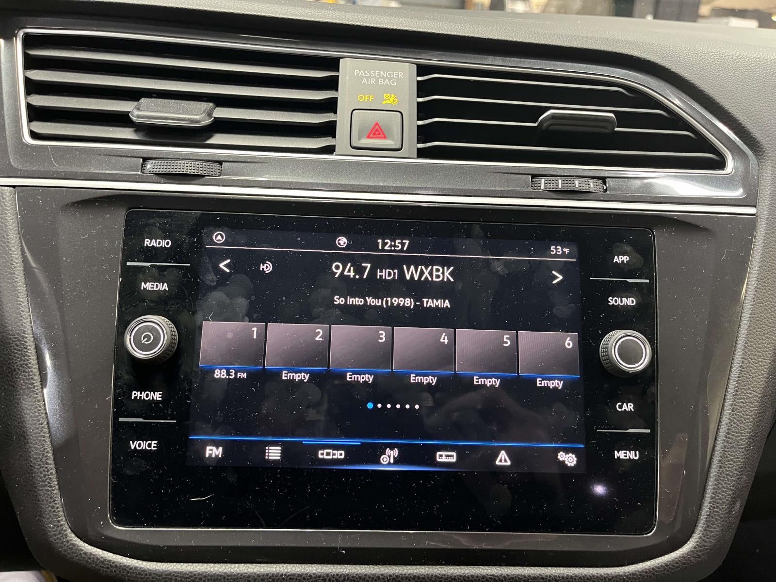 - Radio: MIB3 Composition Media AM/FM/HD -inc: 8" touchscreen, WMA/MP3/FLAC player w/USB-C, voice control, 6-speaker sound system, capability for in-vehicle 4G LTE enabled Wi-Fi (cellular data plan required; includes limited trial), capability for VW Car-Net services (capabilities for certain services vary; requires enrollment or subscription), Bluetooth® connectivity (for compatible devices), SiriusXM w/360L (w/3-month free trial subscription; 360L services require acceptance of Car-Net terms), App-Connect smartphone integration (w/Apple CarPlay, Android Auto and MirrorLink) via USB, Wireless App-Connect smartphone integration (for compatible devices) w/multi-phone pairing capability, 45W fast charging (for compatible mobile phones and accessories) via USB in first and second rows and Qi wireless inductive charger (for compatible mobile phones and accessories)